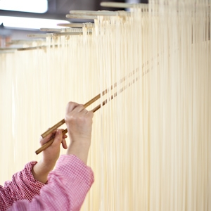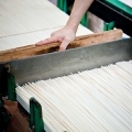 乾燥させたそうめんを、断裁機にて19cmの長さに裁断します。
