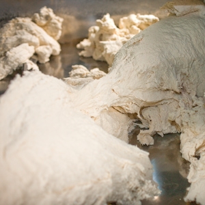 ミキサーに材料、気温や天候に合わせて作った塩水を入れ、ミキシングします。